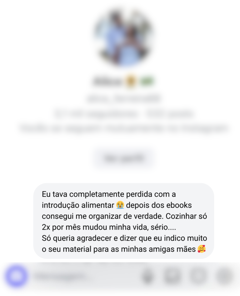 Estou te apresentando uma oportunidade de simplificar a alimentação do seu bebê, aplicando estratégias práticas e testadas na vida real.